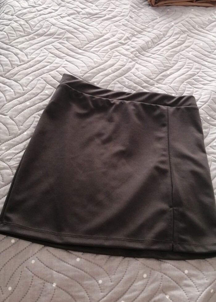 Hiç giyilmedi, etiketi mevcut değildir. Hiçbir sorunu yoktur. Boyu 41 cm dir. En 35 cm lastiklidir. L beden ama tüm bedenlerde uyum sağlar. S M L için. Likralıdır. Double kumaştır. Marka temsilidir. Rengi koyu gri