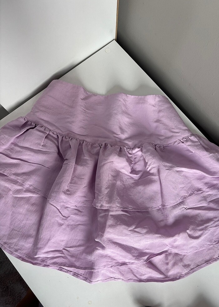 Fırfırlı lila etek , denemek icin giyildi sadece