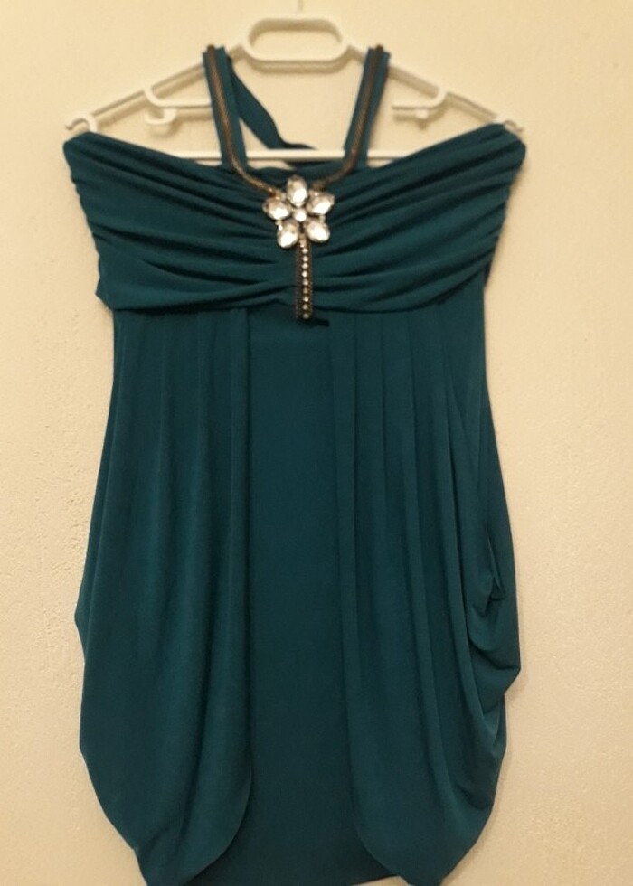 Boyun bağlı gece elbisesi. Likralı
