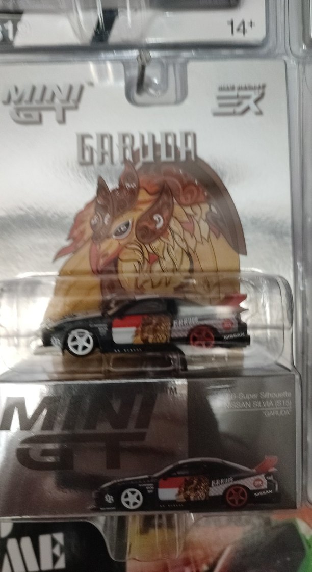 Mini GT markalı siyah Nissan Silvia S15 oyuncak araba, detaylı grafiklere ve şık tasarıma sahiptir. Canlı desenleriyle gerçek aracı yansıtır.