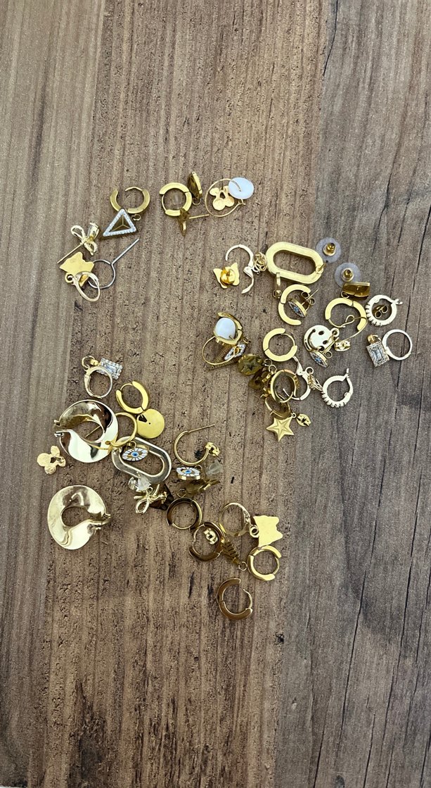 İşlemeli ve payetli detaylara sahip, kısa uzunlukta altın küpe seti. Bohem ve vintage tarzlar için uygundur.