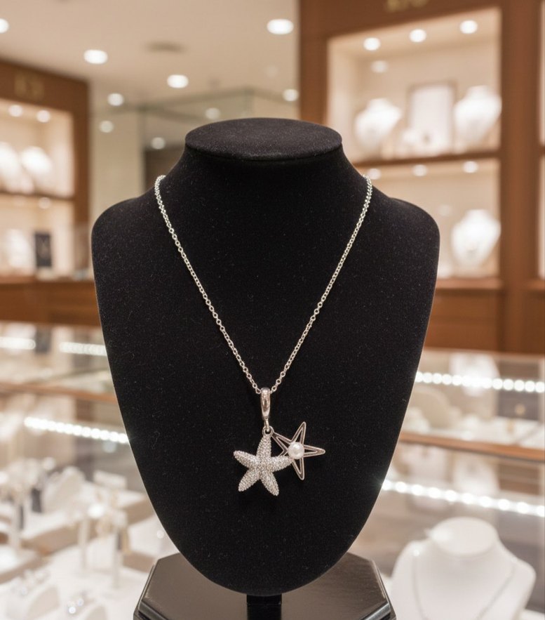 Mini uzunlukta, boncuklu denizyıldızı ve yıldız figürlü, işlemeli detaylara sahip kadın kolyesi. Parlak altın rengiyle çağdaş ve klasik şıklık sunar. ✨
