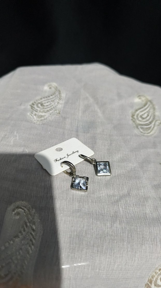 Kare kesim gri taşlı mini küpeler, minimal ve bohem tarzda düğünler için uygun, zarif bir görünüme sahiptir. ✨
