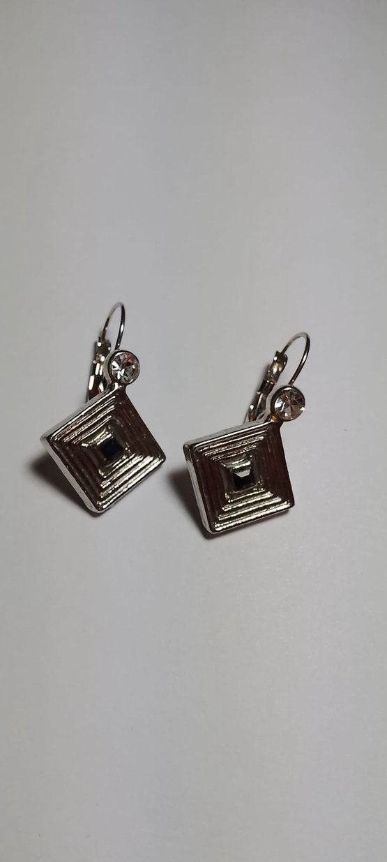 Kısa boy, bej ve gri tonlarda kareli desenli, boncuk detaylı kadın küpeleri, günlük kullanıma uygun.