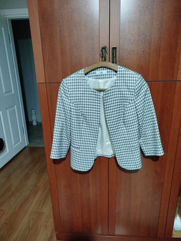 kısa kesim, kareli desene sahip kadın blazer. truvakar kollu, regular fit ve yuvarlak yaka detaylı, günlük kullanıma uygun sokak stili ceket.