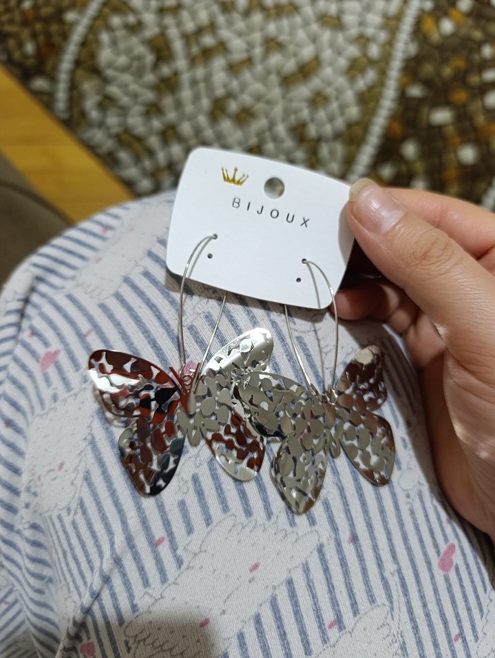 gri baskılı kelebek desenli Bohem ve retro tarzı yansıtır. BIJOUX markası.