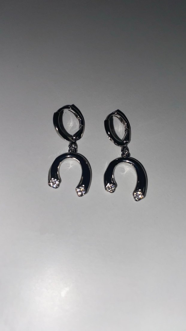 Parlak siyah, kemerli tasarımlı mini gotik küpeler, cesur günlük kullanım için uygun.