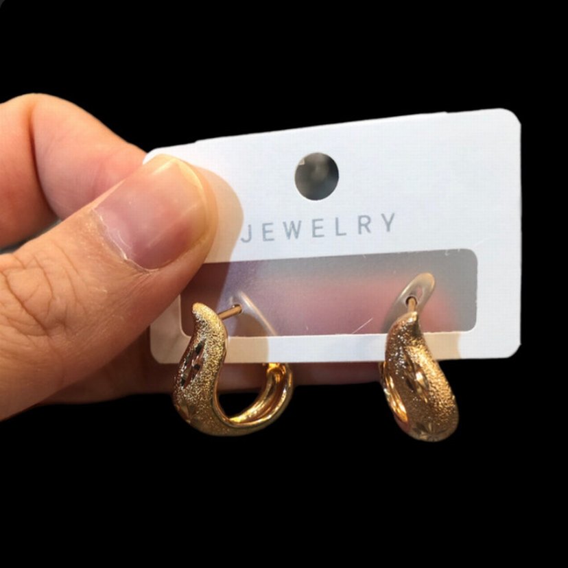 Mini Kısa Altın Renk Desenli Küpe