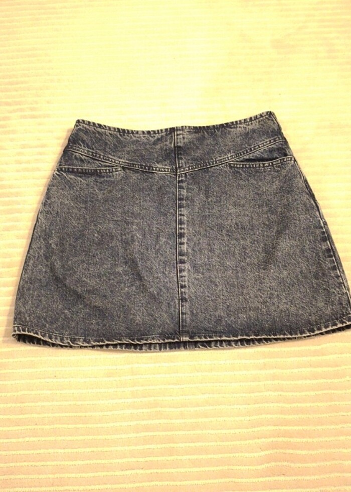 #mini #kot etek #koyu mavi #denim kumaş tok kalın # çok az giyildi, kızım zayıfladığı için satıyoruz# ölçüleri fotoğraflarda var #L beden # Mudo dan almıştım ama etiketi yok ispat edemem