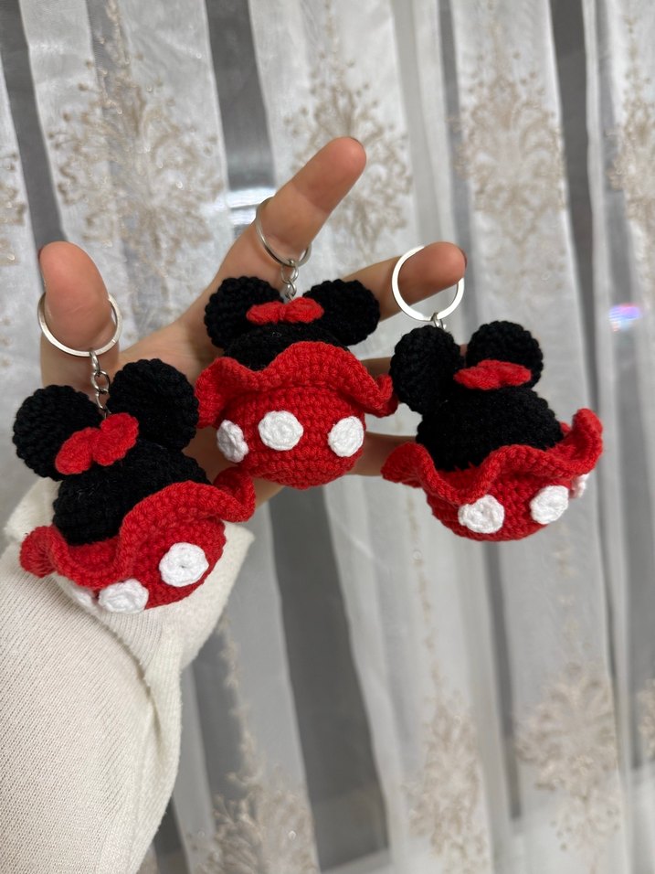 Sayı ve zamanlama için lütfen iletişime geçiniz Kırmızı ve siyah detaylarla sevimli bir karakter şeklinde renkli örgü anahtarlık, fiyonk ve volanlı. Rahat ve sade tarzda.
