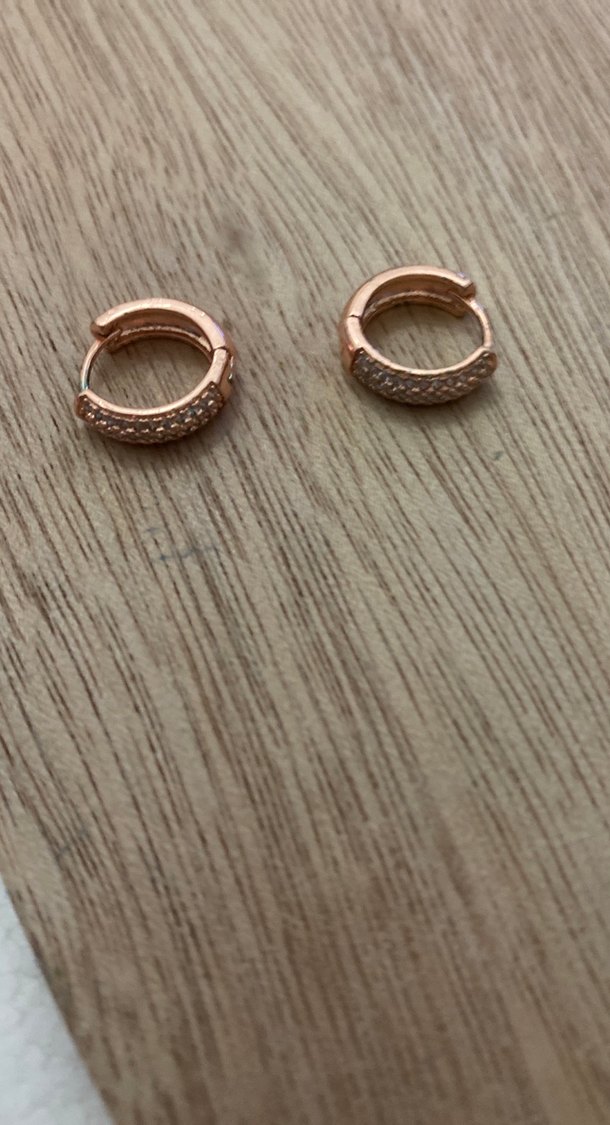 Kısa mini halka küpeler, bej renkte ve sıralı taşlı detaylıdır. Parlak ve çağdaş minimalist tarzda, romantik anlar için uygundur.