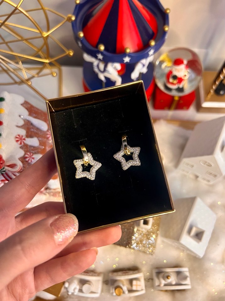 Altın renginde, pul işlemeli mini yıldız şeklinde küpeler. Romantik gece ve gösterişli sokak stili için uygundur. ✨