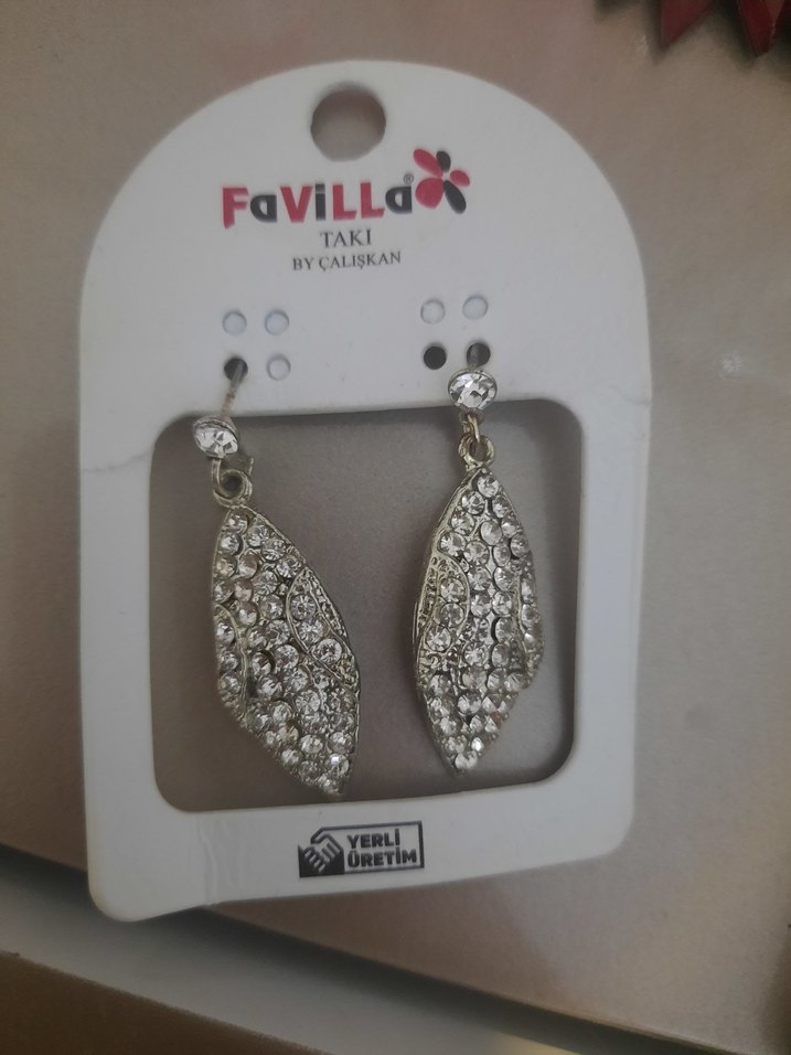 Mini boy beyaz küpeler, payetli ve baskılı desenli, günlük kullanıma uygun klasik tasarım. Marka: FaViLLac. ✨