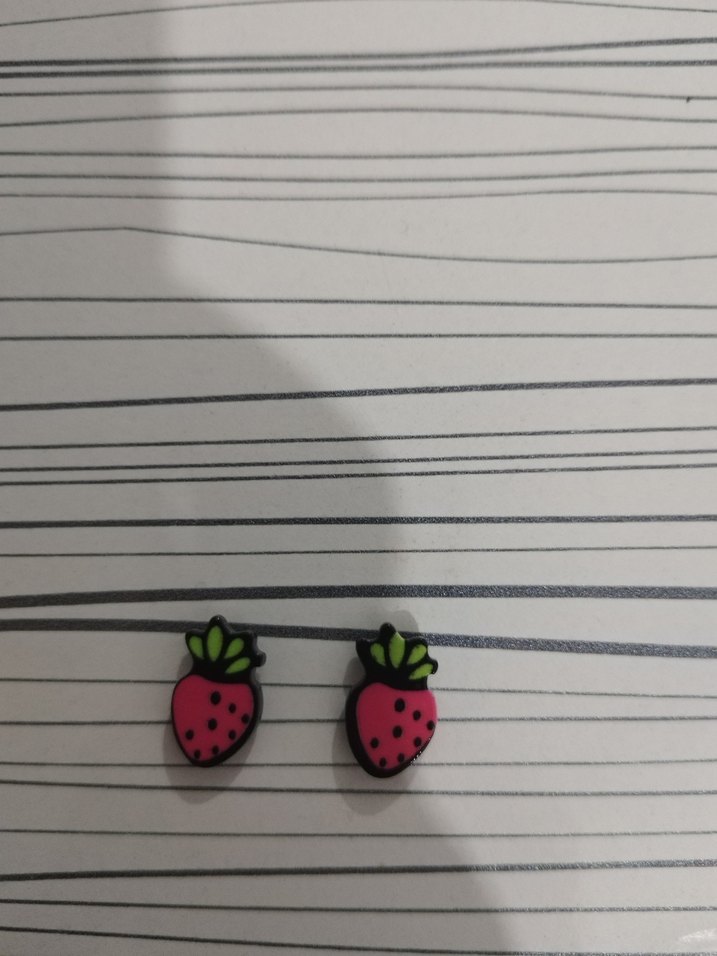 Mini kısa pembe, boncuklu ve baskılı çilek figürlü küpeler, minimal ve rock punk tarzına uygundur. miknatisli cocuk kupe. marka temsili