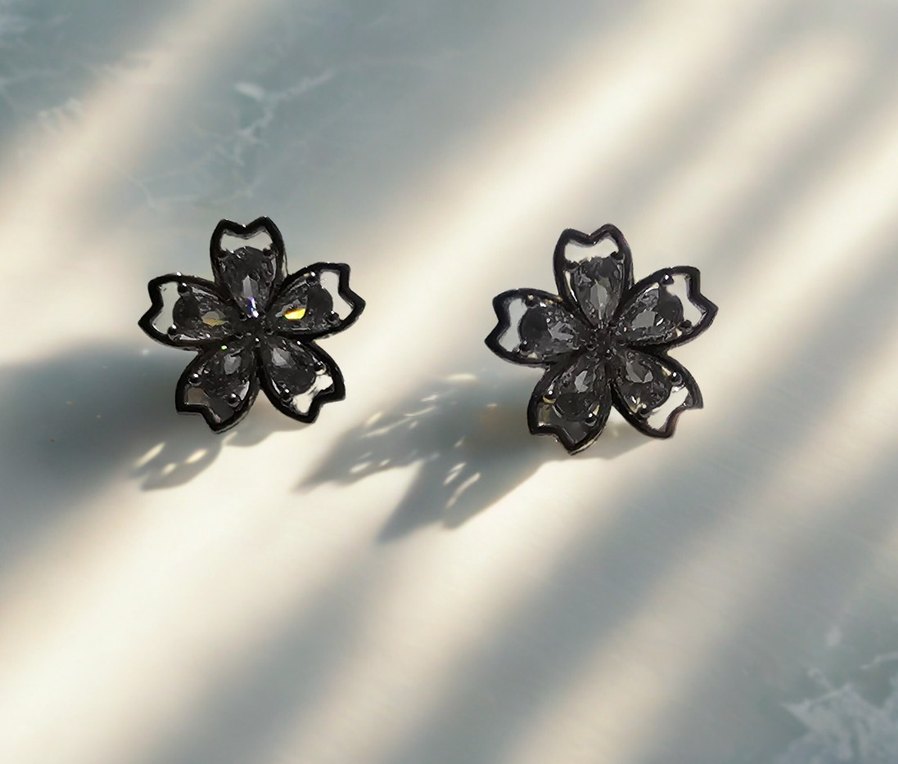 Mini pul işlemeli çiçek küpeler, cesur gotik tarz için romantik buluşmalarda kısa uzunlukta zarif bir seçim. charm seti