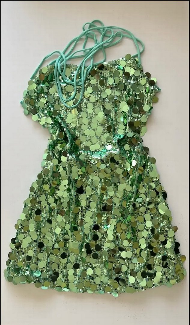 Pul ve payetlerle süslenmiş, vücuda oturan kısa gece elbisedir. Parti için, düğün, nişan balo tercih edilir. Hiç giyilmemiştir defosuzdur
