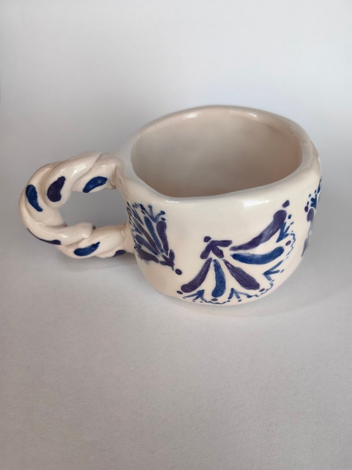 El yapımı çini model çiçek desenleri ve kıvrımlı kulpu olan seramik fincan, içeceklerinize sanatsal bir dokunuş katıyor. Normal kahve fincanının yarısı boyutundadır. Gıdayla temasa uygun sırlanmış üründür. ☕