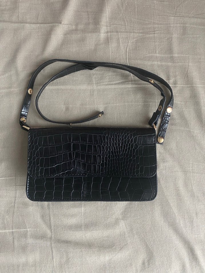 Mini Siyah Suni Deri Baget Çanta