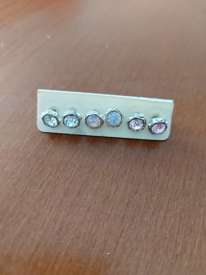 pembe tonlarında, düğmeli ve mini boyda üç çift bohem tarzda küpe seti. Günlük kullanıma uygundur.