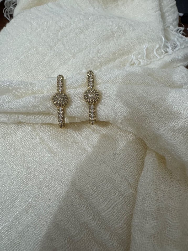 Parlak işlemeli ve taşlı detaylara sahip mini küpeler, klasik ve zarif bir görünüm sunar. ✨