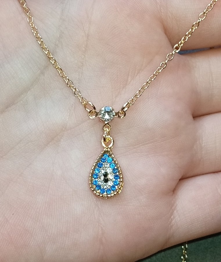 Mini uzunlukta, zincir detaylı turkuaz renkli işlemeli kolye. Bohem tarz için renkli ve şık, küçük taş süslemeli.