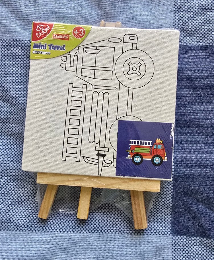 Mini tuval üzerinde çocuklar için renkli yangın söndürme aracı yapbozu. Küçük tahta ş easel ile birlikte gelir. 3 yaş ve üzeri için uygundur.