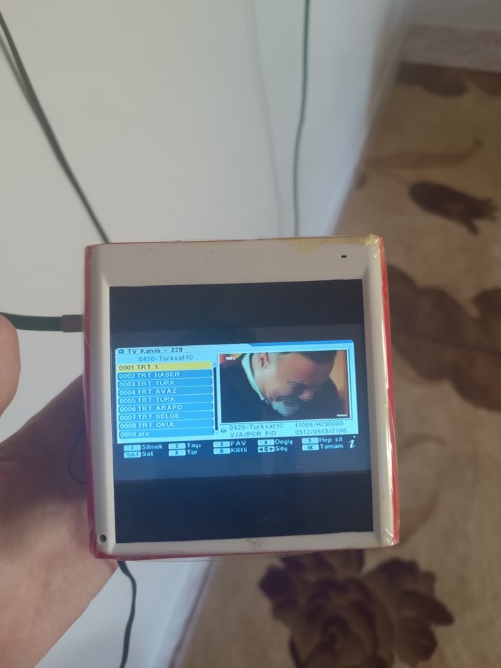 4.3 inç ekranlı mini TV kendim yaptım 12v adaptör ile çalışıyor ses çıkışı eklemedim isteyen ekleyebilir kabloları açık bıraktım çanak ayarlamak için çok güzel bir cihaz ele sığıyor kumandasi ile beraber verilecek adaptörü veremiyorum başka projeler için lazım oluyor #iade kabul edilmemektedir ona göre alım yapınız