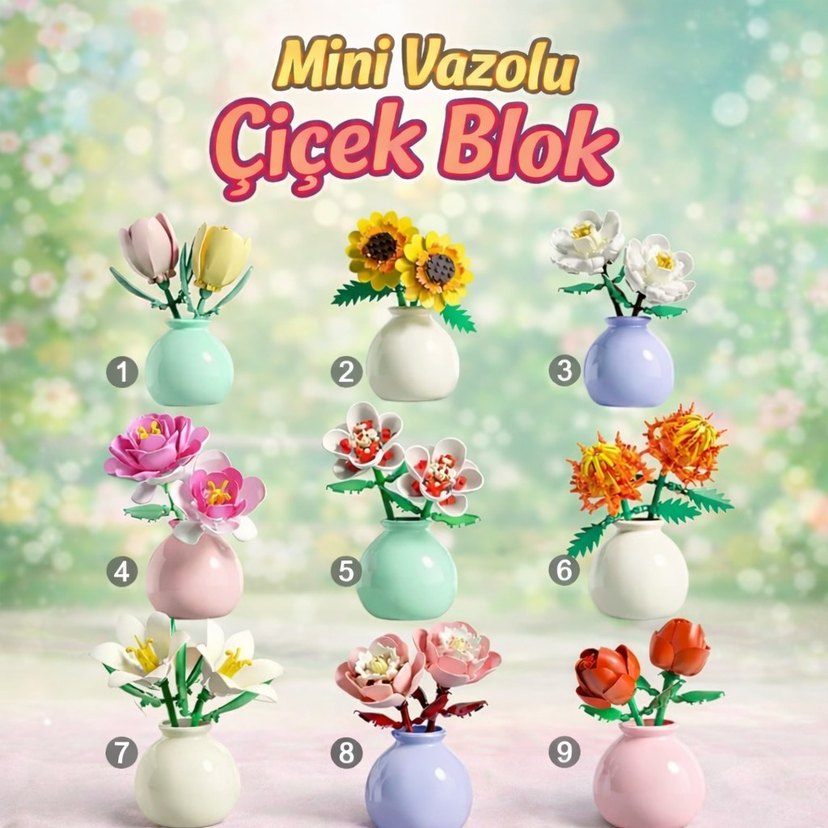 Mini Vazolu Çiçek Lego Blok Gül zambak lale Lego blok Kutulu