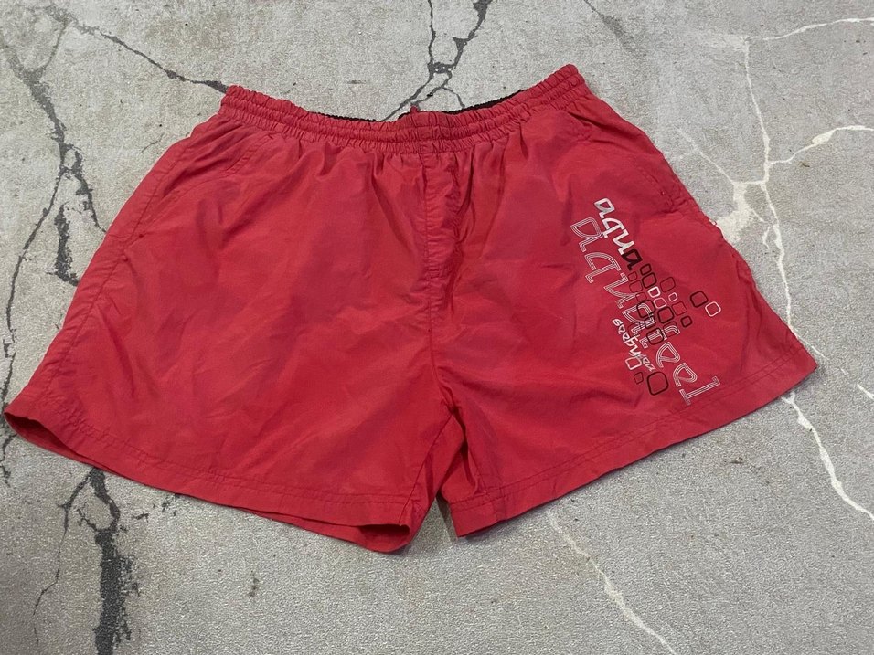 Kırmızı, bel kemerli, bol kesim erkek mini yüzme şortu. Plaj ve sokak giyimi için uygundur. Desensiz ve renkli tarzda. İade kabul etmiyorum