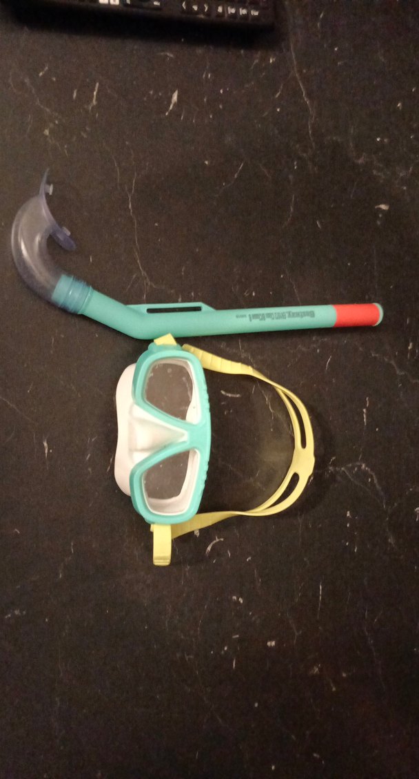 Turkuaz renkli, elastik bantlı ve kısa snorkelli, minimal tasarımlı yüzücü gözlüğü. Plajda kullanıma uygun, fit kesim. Hiç kullanılmadı sadece paketi açıldı