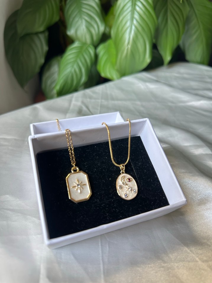 Mini uzunlukta, zincir detaylı ve baskılı minik kolye uçlarına sahip altın renkli kadın kolyeleri, klasik zarafeti çağdaş bir tarzla yansıtıyor. Günlük kullanım için uygundur. ✨ adet fiyatı 200₺