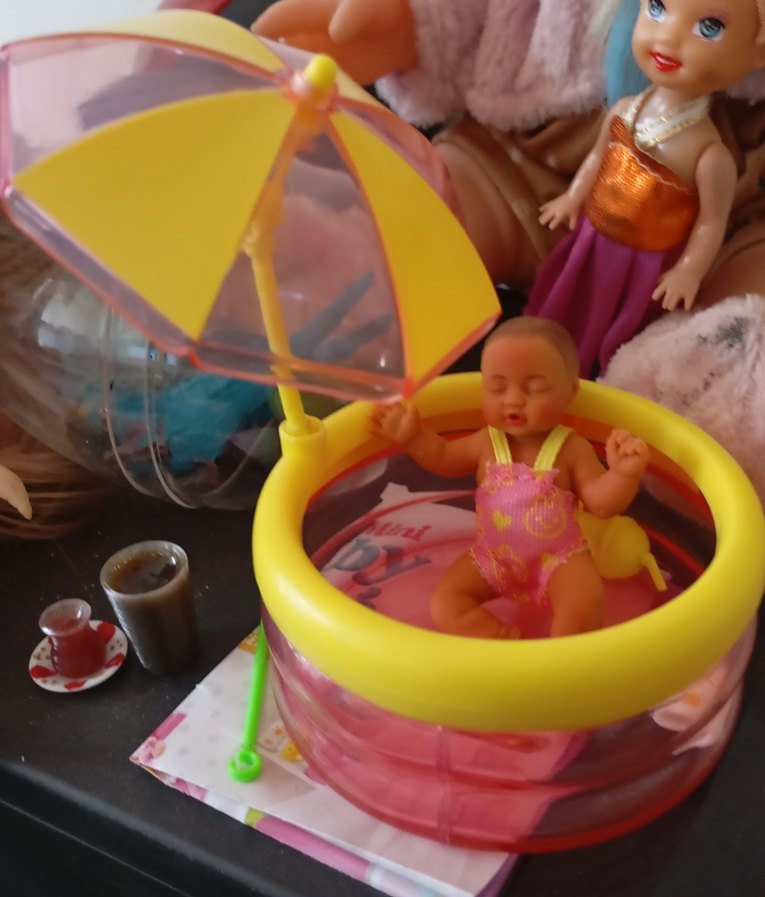 minicik silikon bir bebek ve havuzu, yeni kullanılmamış bebektir.