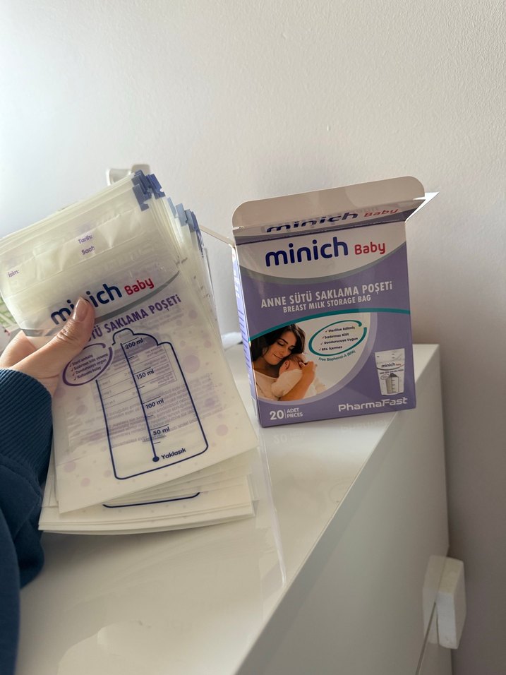 *Minich Baby anne sütü saklama poşetleri paket halinde, ölçü işaretleriyle kolay kullanım sağlar. Sütü taze ve güvenli tutar.* içerisinde 29 adet poşet var.
