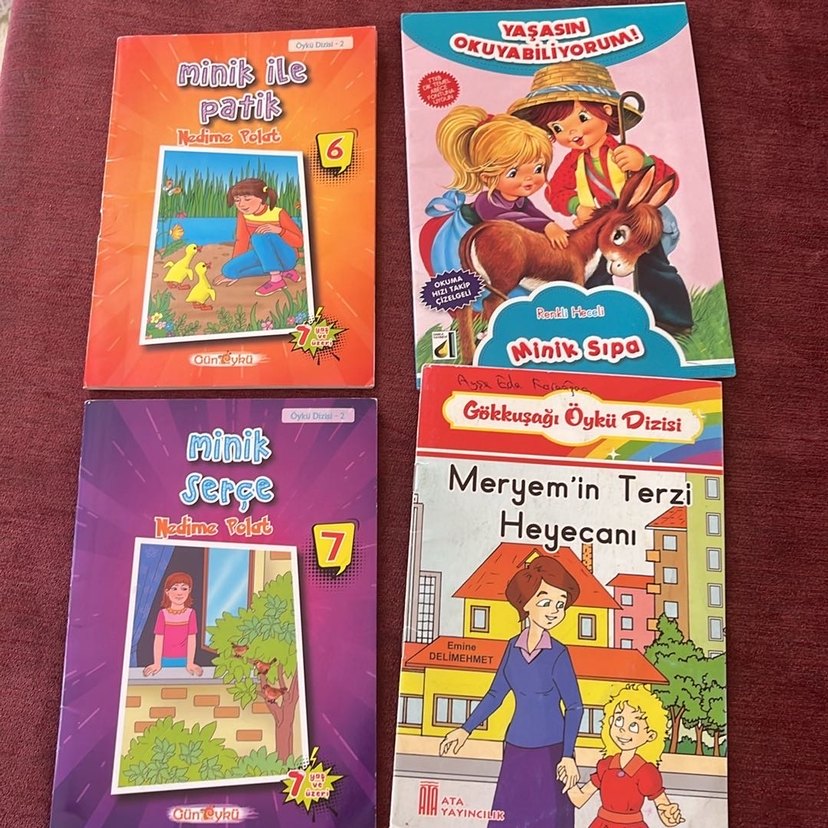 Minik serçe ile minik patiği birlikte alana renkli heceli kitap ile meryemin terzi heyecanı hediye. Minik ile Patik, Minik Serçe, Minik Sıpa ve Meryem'in Terzi Heyecanı kitaplarından oluşan çocuk seti. Renkli, eğlenceli hikayeler içerir.