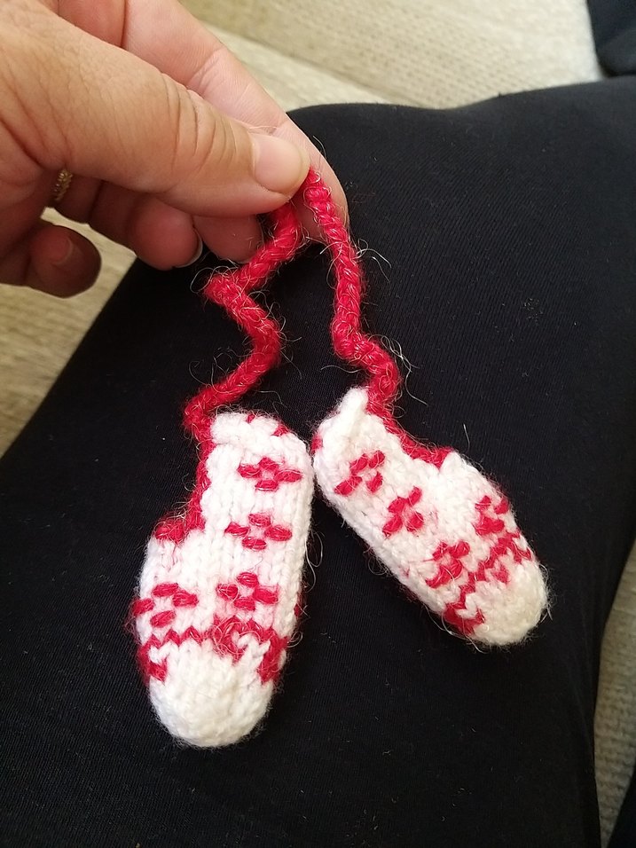 Nakışlı, renkli kırmızı desenli beyaz örme kız eldivenleri, bohem ve retro tarzıyla dikkat çekiyor.
