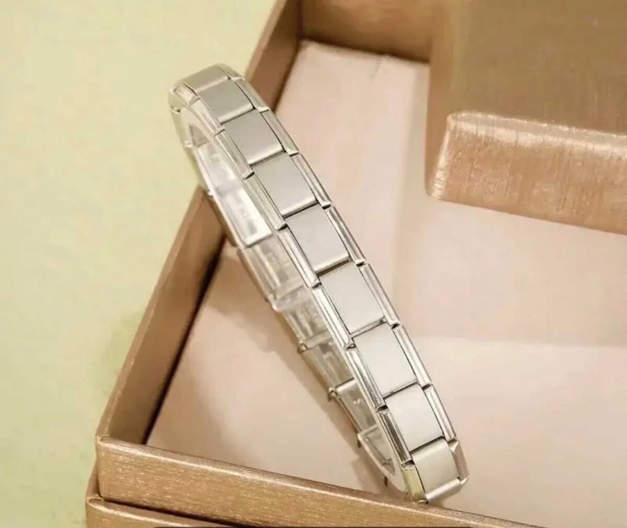 Nomination mat bileklik Parlak altın renkli, zincir detaylı kadın bileklik. Klasik ve zarif stil sunar, günlük kullanıma uygundur. Desensiz ve sokak stilinden esinlenmiştir. ✨