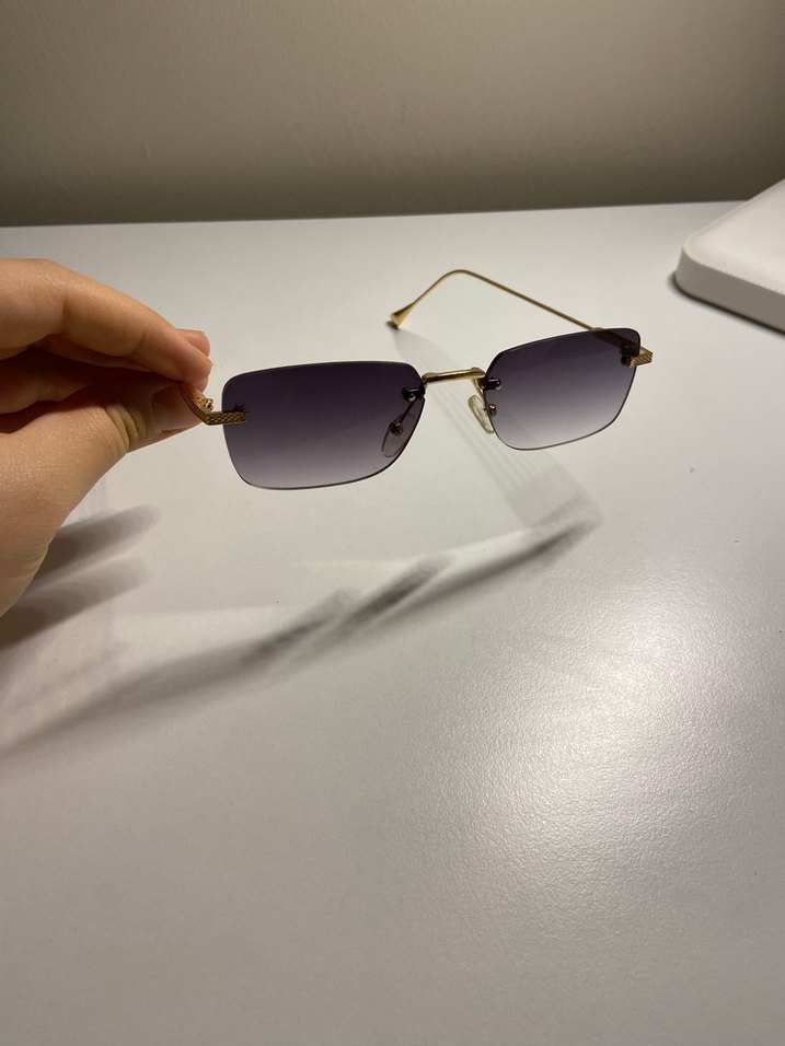 Kadınlar için minimalist tasarıma sahip, şeffaf gri camlı ve altın çerçeveli güneş gözlüğü, sade sokak stili için uygun. ️