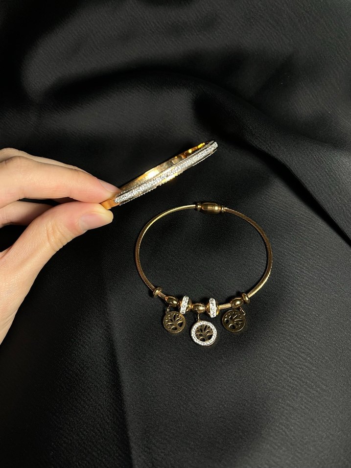 İki adet, Parlak altın renkli bu bileklik, minimalist tasarım ve boncuk detaylarıyla bohem stilini klasik zarafetle birleştirir, günlük kullanım için uygundur. ✨tekliflere açığım