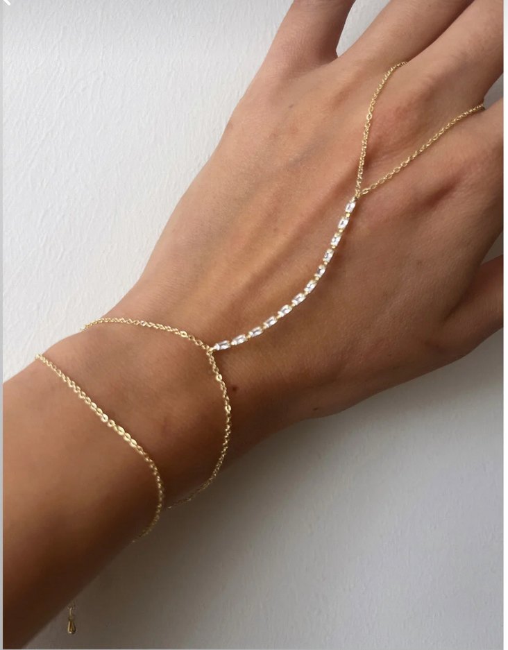 Minimalist tasarımlı, detaylı zincirli altın renk kadın el zinciri. Hafif ve sade görünümüyle günlük bohem tarzına uyum sağlar. ✨