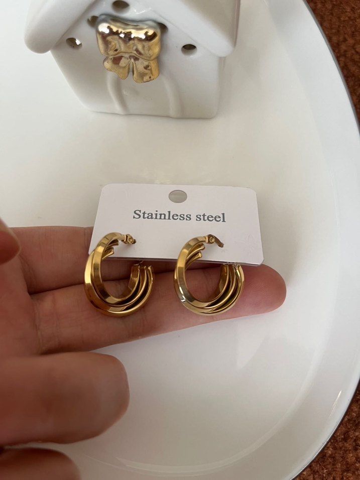 Paslanmaz çelikten, parlak altın renkli, kısa uzunlukta ve tokalı detaylı minimalist mini küpeler.✨