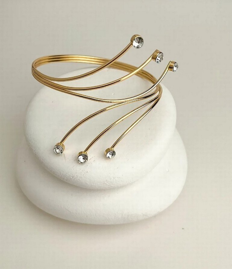 Minimalist tasarıma sahip, taşlı ve altın renkli çağdaş bileklik, düğünler ve klasik şıklık için uygundur. Dilediğiniz ebatlarda ayarlayabilirsiniz✨