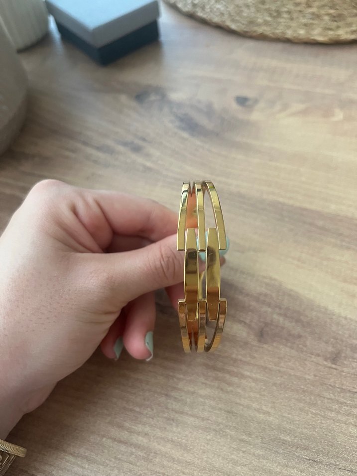 Minimalist ve bohem tarzda, tokalı altın bileklik. Günlük kullanım için ideal, trendsetter ve avant-garde tarzı sevenlere uygun. ✨