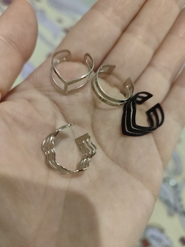 Minimalist, ayarlanabilir beyaz yüzük seti. Avant-garde tasarımıyla günlük kullanıma uygun, farklı açık stillerde ve pürüzsüz yüzeyli.
