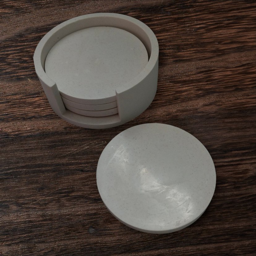 Yuvarlak, pürüzsüz yüzeyli ve modern minimalist tasarıma sahip bardak altlığı seti. 4 adet vardır.