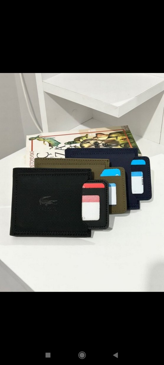 Minimalist baskılı, çok bölmeli koyu renkli erkek cüzdanı, trend sokak stili için uygun.