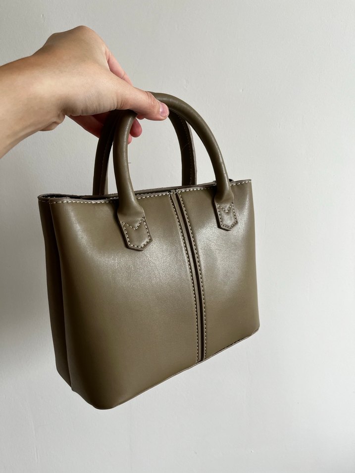 Minimalist bej deri kadın çanta, fermuarlı kapanış ve modern klasik stilde, günlük kullanım için uygun. Düz ve desensiz tasarıma sahip, sağlam saplı.