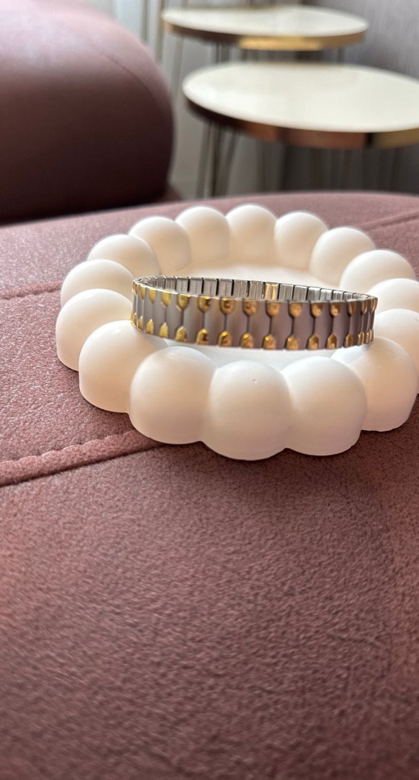 Kadın bilekliği, beyaz boncuklardan oluşan minimalist ve çağdaş tasarıma sahiptir. Klasik zarafet ve günlük kullanım için uygundur. Desensiz, sade bir görünüme sahiptir. ⚪