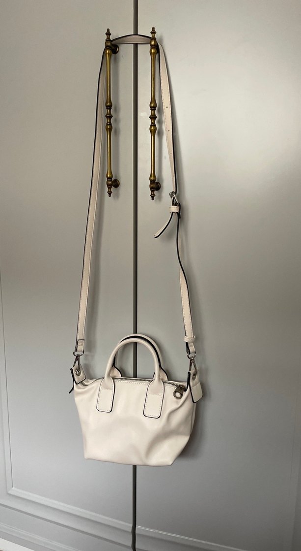 Minimalist beyaz deri kadın çanta, tokalı askısı ve desen içermeyen sade tasarımıyla günlük kullanıma uygundur. Çağdaş ve temel bir görünüme sahiptir.