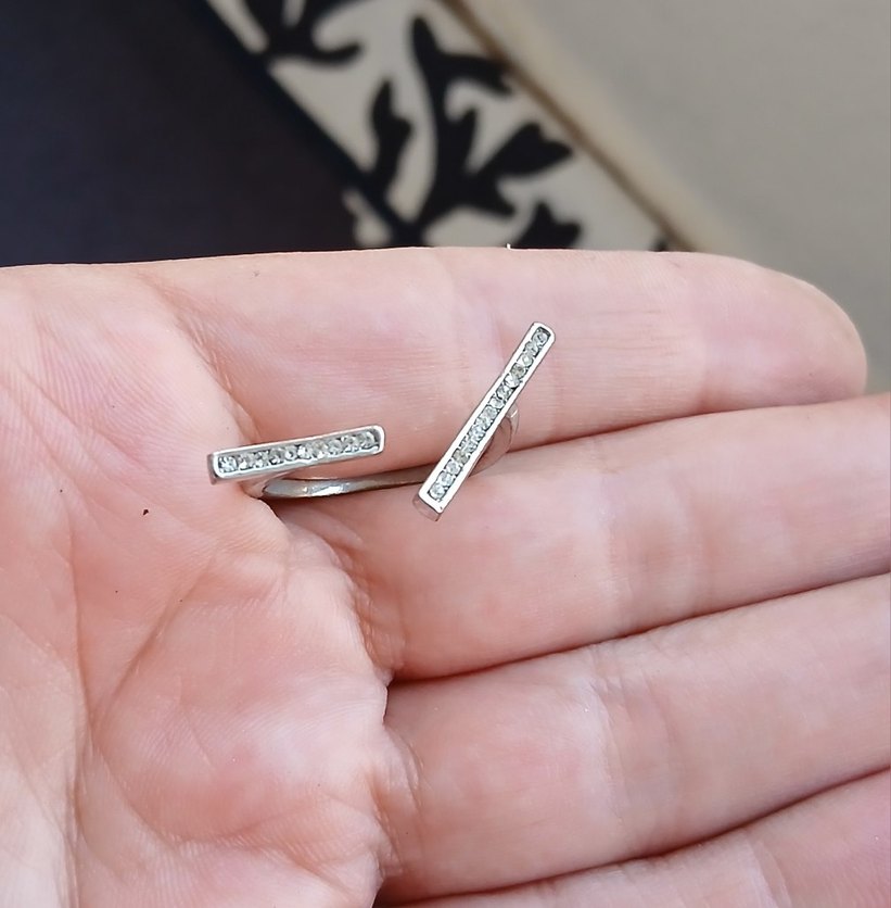 Minimalist beyaz ve gri tonlarda, yarık detaylı kadın küpeleri. Romantik akşamlar için çağdaş, desensiz tasarım.
