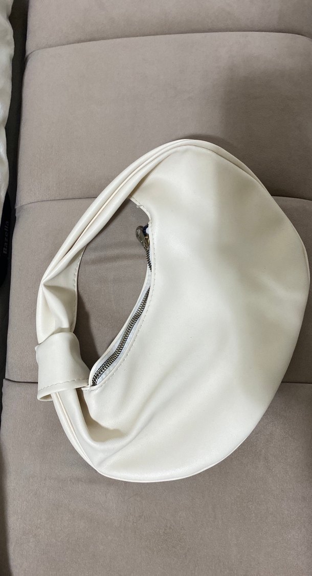 Minimalist beyaz kadın çanta, fermuarlı ve yumuşak sentetik kumaştan yapılmıştır. Günlük sokak stili için şık ve modaya uygun.